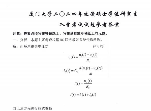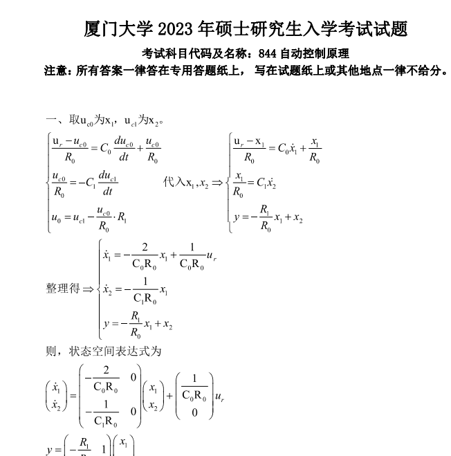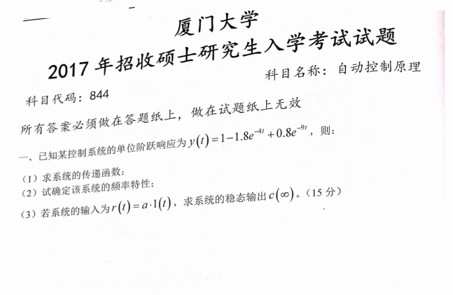 2026厦门大学844自动控制原理考研全套资料(真题答案+笔记题库)