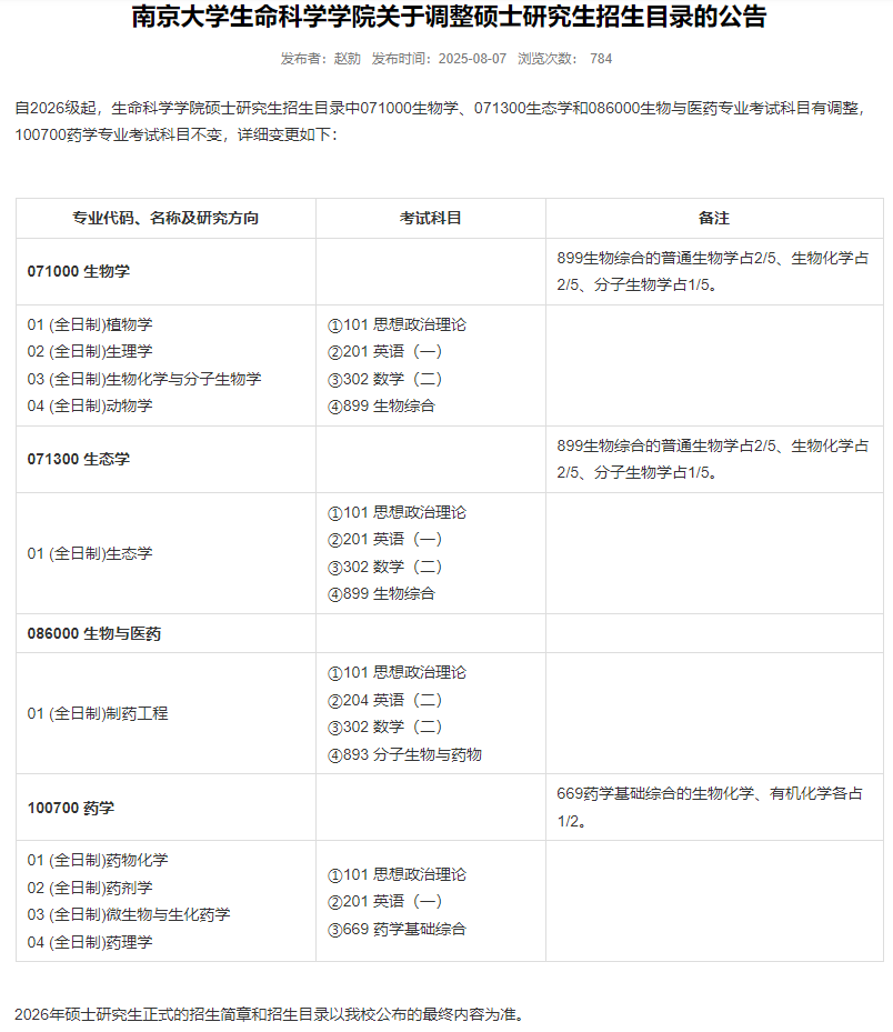 ==2025南京大学招生目录==