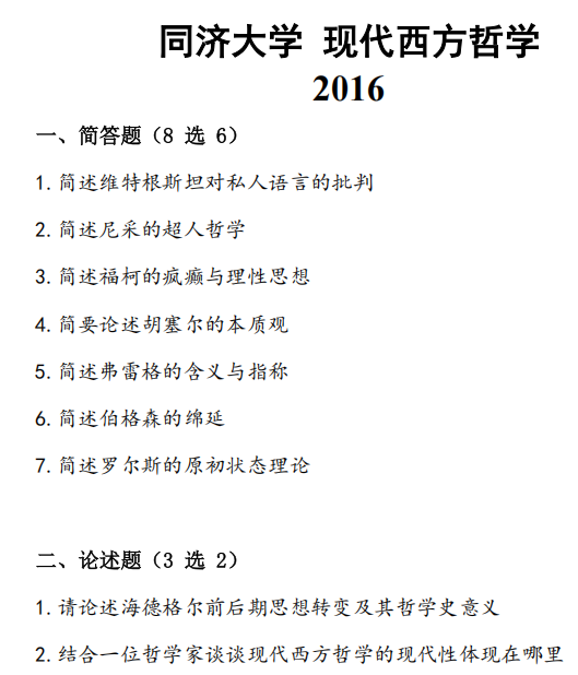 2016-2025年同济大学851哲学基础(现代西方哲学)考研真题