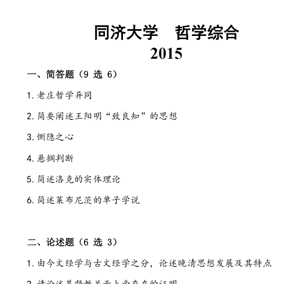 2015-2025年同济大学638哲学综合考研真题