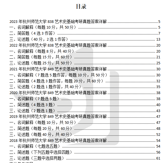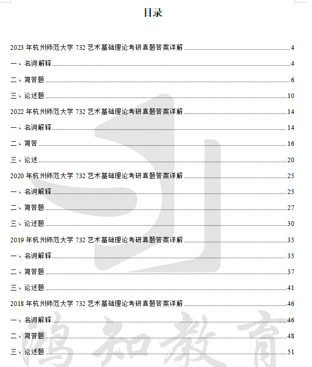 2018-2020,2022-2023年杭州师范大学732艺术基础理论考研真题参考答案【无21】