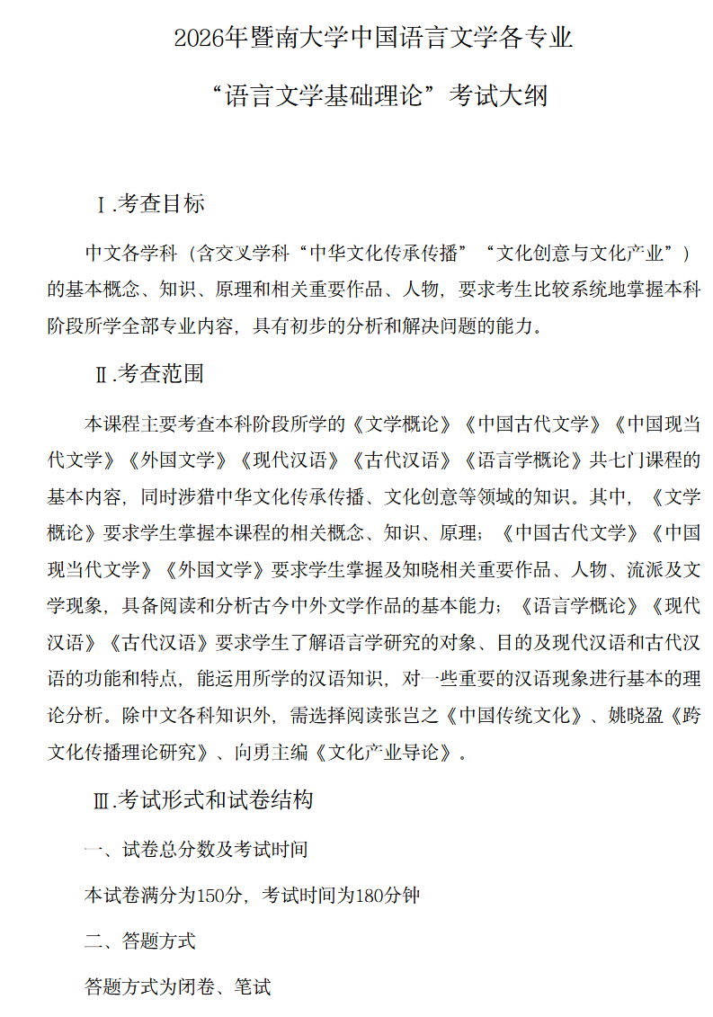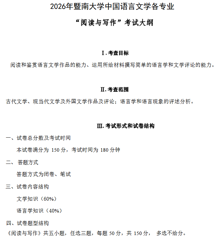 ==2026暨南大学考试大纲==
